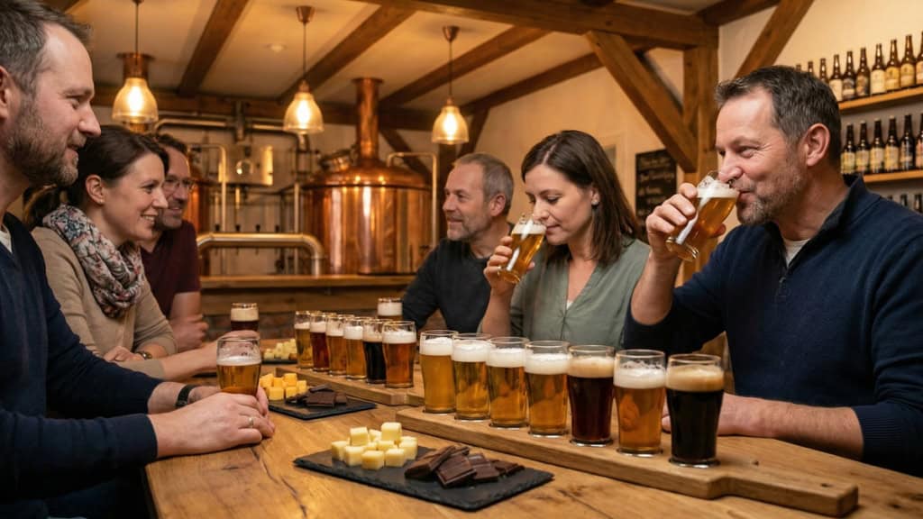 Teilnehmer verkosten mehrere unterschiedliche Biere und lernen deren geschmackliche Eigenschaften kennen. Das Bier Tasting bei Chemnitz wird durch fachkundige Erklärungen begleitet und durch passende kulinarische Snacks wie Käse und Schokolade ergänzt.
