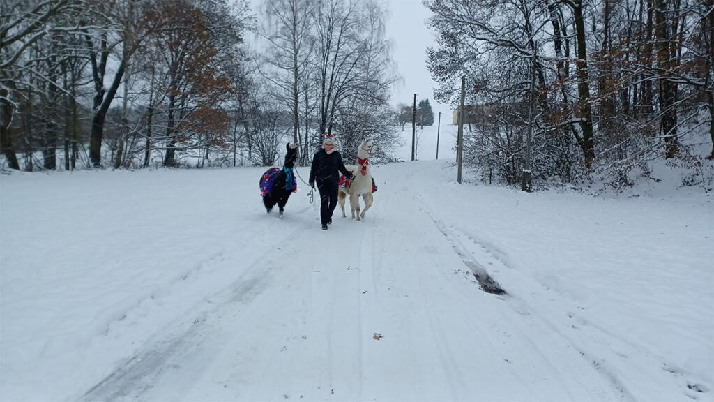 Bei der Lama Glühweinwanderung bei Görlitz ist jeweils ein Lama für zwei Teilnehmer als gemeinsamer Wanderbegleiter vorgesehen. So können die Teilnehmenden das Tier in Ruhe kennenlernen, gemeinsam eine Verbindung aufbauen und die Wanderung bewusst und intensiv genießen.